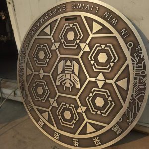 8mm pure copper relief combined with ductile iron base – custom-made combined type artistic manhole cover.