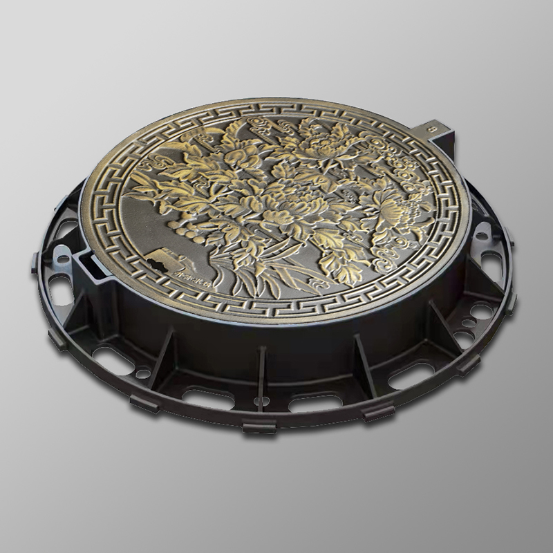 2. 使用铸铁作为承重基础,并在表面凹槽里,放置一层8毫米厚的浮雕铜板,两种材料采用物理结合,形成一套完整的成品井盖,这个方法适合小批量,可以长期使用;